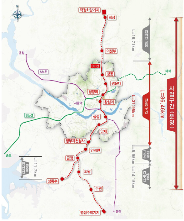 GTX-C : 양주 덕정 - 청량리 - 삼성 - 상록수/ 수원 구간